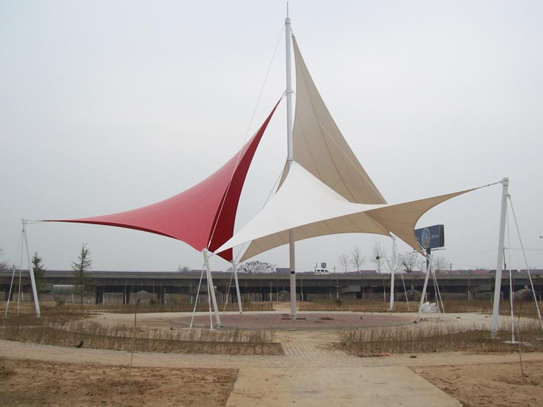 景觀膜結(jié)構(gòu)又稱張拉膜景觀,主要通過膜結(jié)構(gòu)的張拉式 呈現(xiàn)出唯美的結(jié)構(gòu)特征;膜材料是指聚酯纖維基布或PVDF、PVF、PTFE等不同的表面涂層,配以優(yōu)質(zhì)的PVC組成的具有穩(wěn)定的形態(tài),并可承受一定載荷的建筑紡織品。它的壽命因不同的表面涂層而異,一般可達(dá)成10-20年;其外觀整潔大方,自潔性強(qiáng)。主要應(yīng)用于各大公園,世博園,和一些廣場(chǎng),商場(chǎng)等場(chǎng)所。