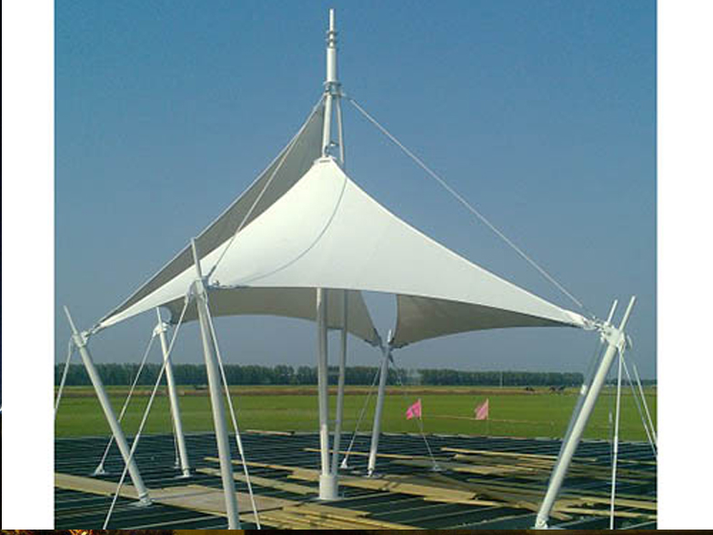 景觀膜結構 景觀膜結構又稱張拉膜景觀,主要通過膜結構的張拉式 呈現(xiàn)出唯美的結構特征;膜材料是指聚酯纖維基布或PVDF、PVF、PTFE等不同的表面涂層,配以優(yōu)質的PVC組成的具有穩(wěn)定的形態(tài),并可承受一定載荷的建筑紡織品。它的壽命因不同的表面涂層而異,一般可達成10-20年;其外觀整潔大方,自潔性強。主要應用于各大公園,世博園,和一些廣場,商場等場所。