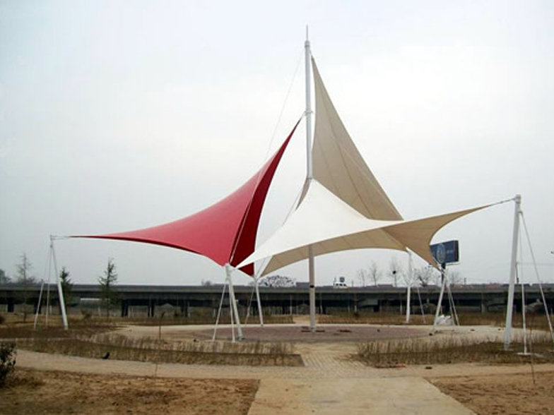 景觀膜結(jié)構(gòu)又稱張拉膜景觀,主要通過膜結(jié)構(gòu)的張拉式 呈現(xiàn)出唯美的結(jié)構(gòu)特征;膜材料是指聚酯纖維基布或PVDF、PVF、PTFE等不同的表面涂層,配以優(yōu)質(zhì)的PVC組成的具有穩(wěn)定的形態(tài),并可承受一定載荷的建筑紡織品。它的壽命因不同的表面涂層而異,一般可達(dá)成10-20年;其外觀整潔大方,自潔性強(qiáng)。主要應(yīng)用于各大公園,世博園,和一些廣場,商場等場所。