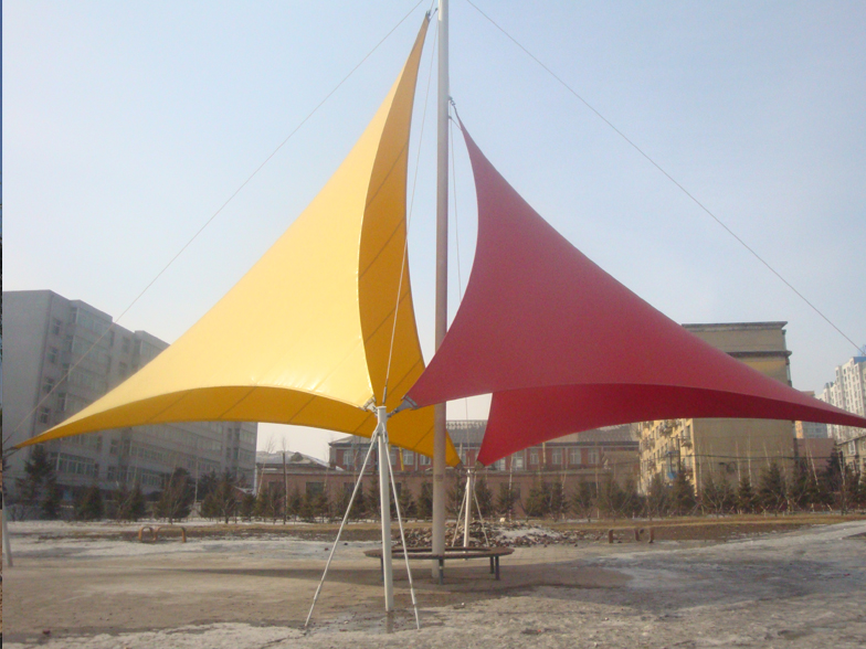 景觀膜結(jié)構(gòu)又稱張拉膜景觀,主要通過(guò)膜結(jié)構(gòu)的張拉式 呈現(xiàn)出唯美的結(jié)構(gòu)特征;膜材料是指聚酯纖維基布或PVDF、PVF、PTFE等不同的表面涂層,配以優(yōu)質(zhì)的PVC組成的具有穩(wěn)定的形態(tài),并可承受一定載荷的建筑紡織品。它的壽命因不同的表面涂層而異,一般可達(dá)成10-20年;其外觀整潔大方,自潔性強(qiáng)。主要應(yīng)用于各大公園,世博園,和一些廣場(chǎng),商場(chǎng)等場(chǎng)所。