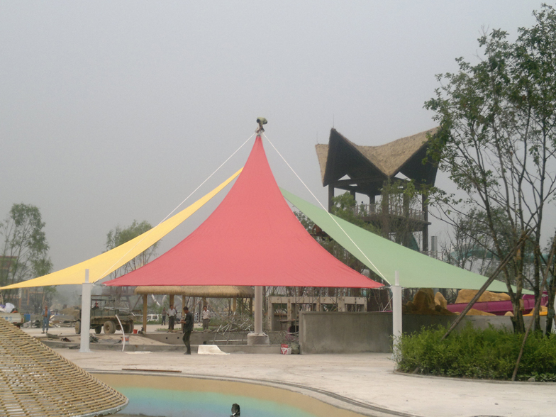景觀膜結(jié)構(gòu)又稱張拉膜景觀,主要通過膜結(jié)構(gòu)的張拉式 呈現(xiàn)出唯美的結(jié)構(gòu)特征;膜材料是指聚酯纖維基布或PVDF、PVF、PTFE等不同的表面涂層,配以優(yōu)質(zhì)的PVC組成的具有穩(wěn)定的形態(tài),并可承受一定載荷的建筑紡織品。它的壽命因不同的表面涂層而異,一般可達(dá)成10-20年;其外觀整潔大方,自潔性強(qiáng)。主要應(yīng)用于各大公園,世博園,和一些廣場,商場等場所。