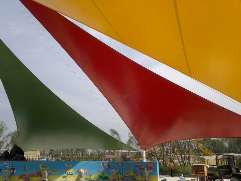景觀膜結(jié)構(gòu)又稱張拉膜景觀,主要通過膜結(jié)構(gòu)的張拉式 呈現(xiàn)出唯美的結(jié)構(gòu)特征;膜材料是指聚酯纖維基布或PVDF、PVF、PTFE等不同的表面涂層,配以優(yōu)質(zhì)的PVC組成的具有穩(wěn)定的形態(tài),并可承受一定載荷的建筑紡織品。它的壽命因不同的表面涂層而異,一般可達(dá)成10-20年;其外觀整潔大方,自潔性強。主要應(yīng)用于各大公園,世博園,和一些廣場,商場等場所。