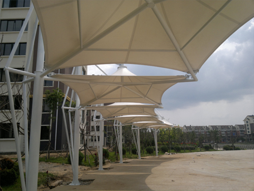 呼和浩特景觀膜結構 景觀膜結構又稱張拉膜景觀,主要通過膜結構的張拉式 呈現(xiàn)出唯美的結構特征;膜材料是指聚酯纖維基布或PVDF、PVF、PTFE等不同的表面涂層,配以優(yōu)質的PVC組成的具有穩(wěn)定的形態(tài),并可承受一定載荷的建筑紡織品。它的壽命因不同的表面涂層而異,一般可達成10-20年;其外觀整潔大方,自潔性強。主要應用于各大公園,世博園,和一些廣場,商場等場所。