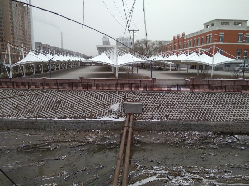 膜結(jié)構(gòu)車棚是膜材料是指聚酯纖維基布或PVDF、PVF、PTFE等不同的表面涂層,配以優(yōu)質(zhì)的PVC組成的具有穩(wěn)定的形態(tài),并可承受一定載荷的建筑紡織品。它的壽命因不同的表面涂層而異,一般可達(dá)成10-20年膜結(jié)構(gòu)車棚是當(dāng)今比較流行應(yīng)用的一種車棚,膜材料是指聚酯纖維基布或PVDF、PVF、PTFE等不同的表面涂層,配以優(yōu)質(zhì)的PVC組成的具有穩(wěn)定的形態(tài),并可承受一定載荷的建筑紡織品。它的壽命因不同的表面涂層而異,一般可達(dá)成10-20年;其外觀整潔大方,自潔性強(qiáng)。主要應(yīng)用于各大商場,工廠,政府機(jī)關(guān),學(xué)校等場所。